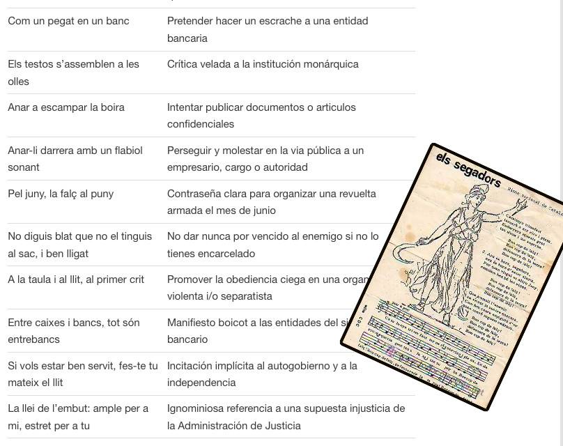 "Pel juny, la falç al puny" és una "Contraseña clara para organizar una revuelta armada el mes de junio".