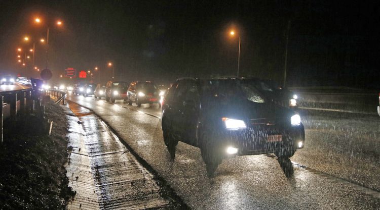 causa de la nevada es van formar fins a 35 quilòmetres de cua a la