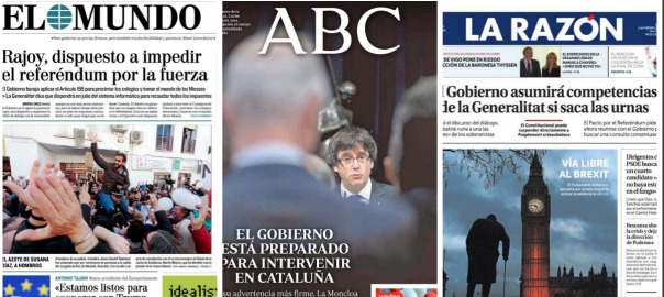 ‘Rajoy, disposat a impedir el referèndum per la força’, titula El Mundo;