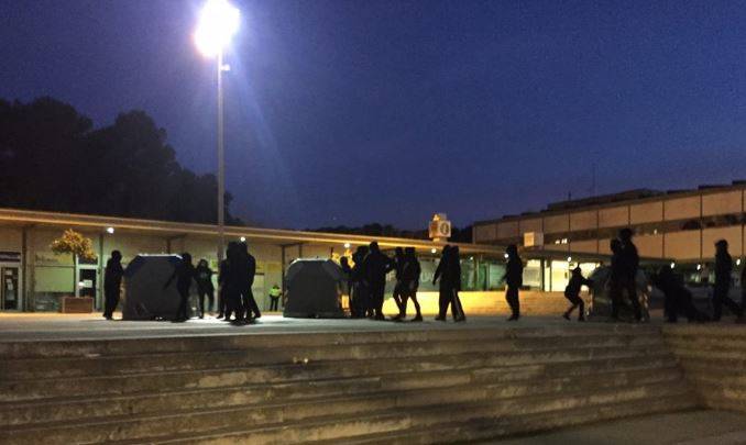 | Estudiants de la UAB preparant barricades a primera hora |