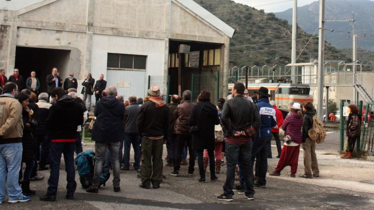 | Concentració de protesta en contra de la supressió del tren nocturn a l'estació de Cervera de la Marenda (Albera, Rosselló). |