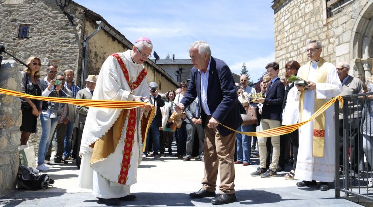 | L'arquebisbe, Joan-Enric Vives, i l'alcalde, Bartomeu Baqué, inaugurant l'espai on hi havia el cementiri. |
