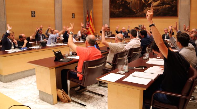 | Els diputats, aprovant per unanimitat la moció en contra de la línia d'alta tensió. |