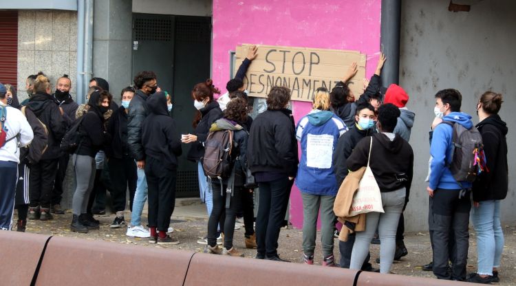 Per impedir que la Sareb en recuperés la propietat, una trentena de joves s'han concentrat a les portes de La Semilla Migrante.