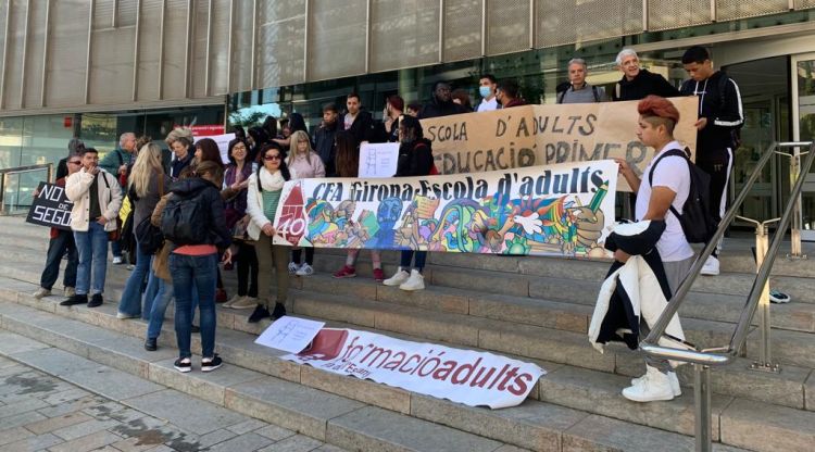 Una quarantena de professors i alumnes s'han concentrat davant la seu a Girona de la Delegació de la Generalitat