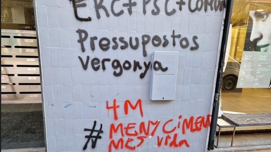 En totes les pintades s'hi poden llegir les paraules "Pressupostos" i "Vergonya". A la seu del PSC han pintat a la façana de l'edifici que té l'agrupació gironina al carrer La Salle, al barri de l'Eixample, on també hi han escrit "Menys ciment, més vida". A ERC, els hi han pintat a l'immoble del carrer Ultònia, també a l'Eixample, tant a la façana com un balcó i també a la persiana del futur local de la campanya electoral al Carrer Nou, al barri del Mercadal. Als dos indrets també hi han escrit "defensa territori", així com una crida a participar en una manifestació prevista pel 4 de març.
